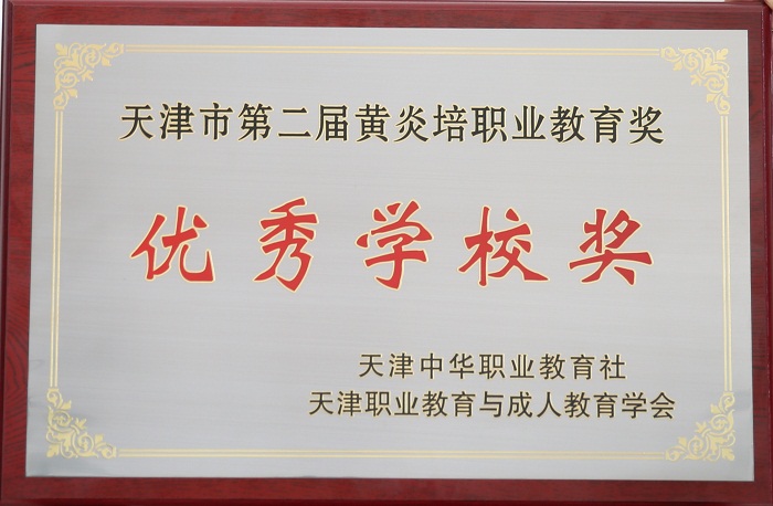 天津职业教育与成人教育学会颁发的“天津市第二届黄炎培职业教育奖优秀学校奖”奖牌