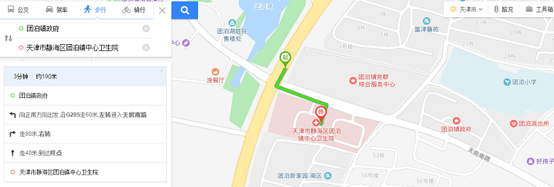 公交团泊镇政府站与团泊医院距离图示