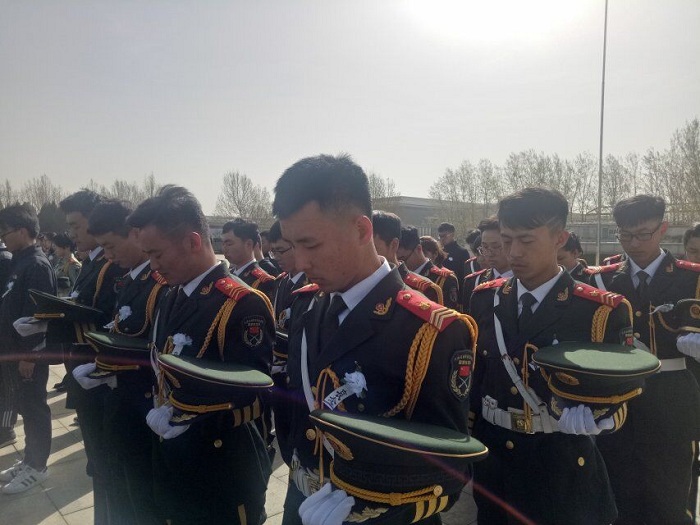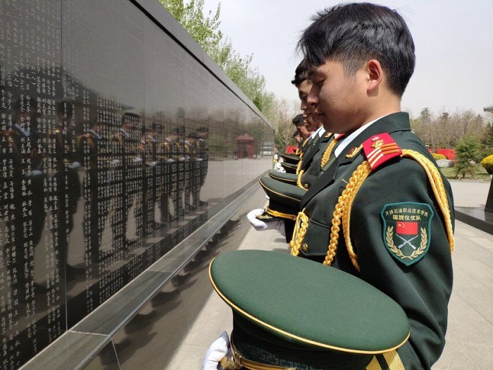 4月5日,天津石油职业技术学院国旗仪仗队全体队员来到天津市烈士陵园(全国爱国主义教育示范基地),缅怀祭奠革命先烈。