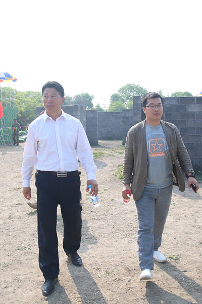 韩福勇院长(左)赛前陪同王笃汪秘书长(右)巡看比赛现场