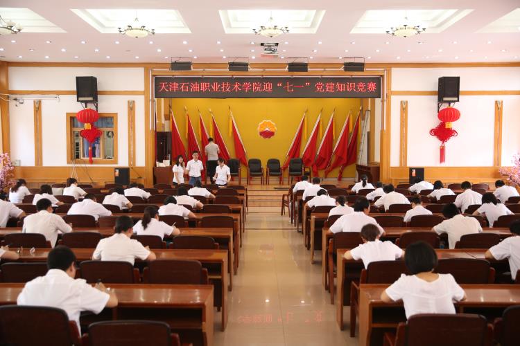6月19日下午,天津石油职业技术学院党委在报告厅举办迎“七一”党建知识竞赛活动。由各党支部精心选拔出的54名党员参加了本次竞赛。 据悉,本次竞赛活动自6月初即开始启动,各党支部事前已自行开展了初赛,并选拔出在初赛中表现优异的选手参加决赛。决赛采取统一命题、统一考试的笔试方式进行。试卷内容涵盖党章党规党纪、习近平新时代中国特色社会主义思想、基层党建基本常识和中国石油集团公司党组工作部署精神等等。  竞赛现场 另悉,除开展党建知识答题活动外,学院按照年初制定下发的《宣传思想文化工作实施方案》,已经开展了“学习强国”积分排位赛、理论大讲堂暨集体党课学习,还将陆续开展“不忘初心 牢记使命 我为祖国献石油”党员教育等系列活动,以充分调动党员干部学习的自觉性和积极性,巩固和扩大“两学一做”学习教育成果,进而有效助推学院人才培养中心工作上水平,以优异成绩迎庆党的生日的到来。(信息来源:党委组织部赵瑛、李莎报道)